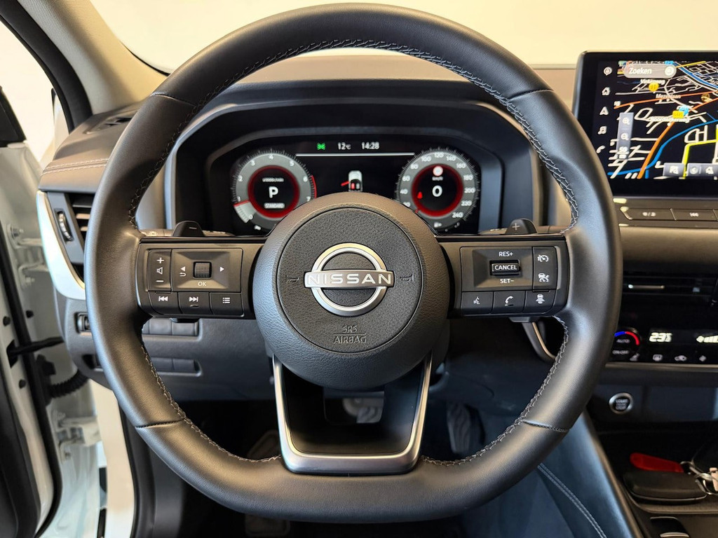 De digitale wereld van mobiliteit verwelkomt u; op het digitale dashboard wordt alles weergegeven om uw rit gemakkelijk en veilig te maken. Met de 360 graden camera op deze auto wordt het rijden een heel stuk veiliger, dankzij het optimale zicht dat het biedt. Adaptive cruise control is een comfortabele en veilige optie. Het systeem reguleert de snelheid en houdt automatisch afstand tot uw voorligger. Zoals u van zo'n jonge auto mag verwachten, zijn hier ook de geavanceerde remote services aanwezig. Simpelweg met een app op uw smartphone controleert u op afstand de status van de auto en bedient u diverse functies. Onderweg kunt u veilig genieten van het audio-installatiesysteem met DAB-radio en het full map navigatiesysteem. Want in deze Nissan bedient u ze vanaf het stuurwiel. Ook achteropkomend verkeer waarschuwing, kruisend verkeer detectie, automatische airconditioning, sportstuur met schakelpaddels, draadloos opladen en regensensor horen tot de voorzieningen op deze auto.