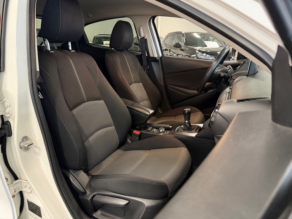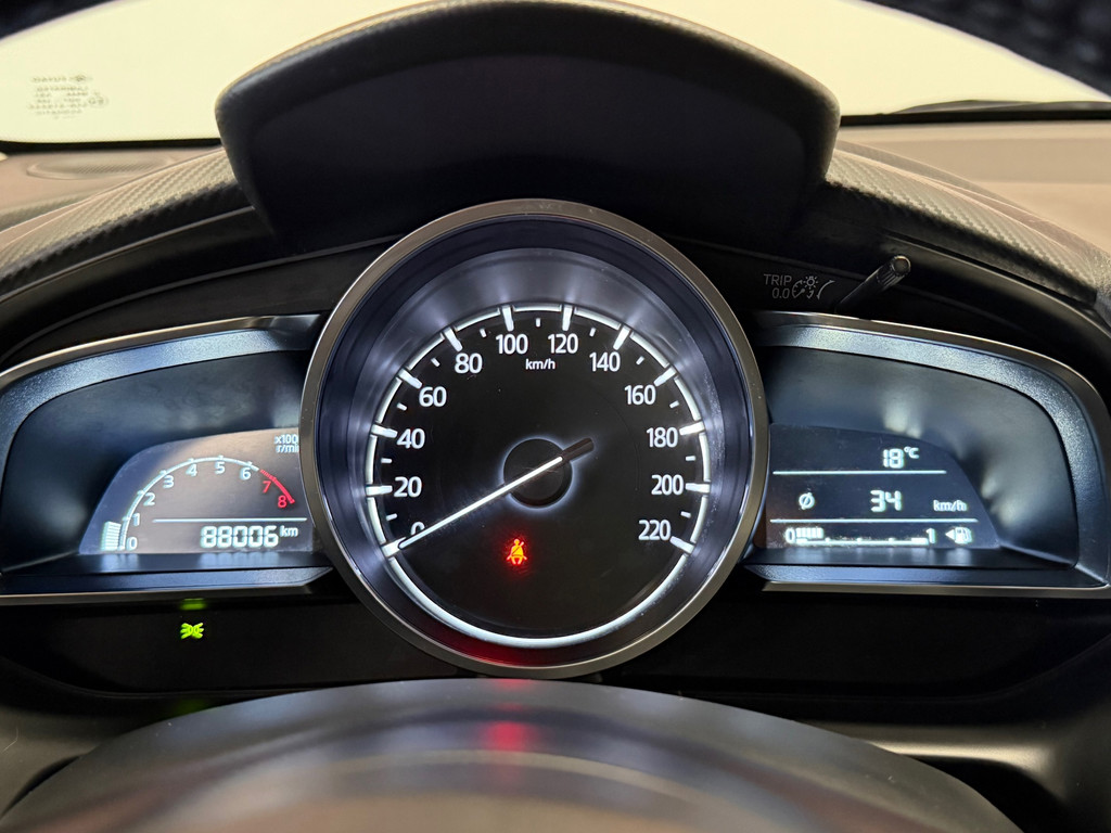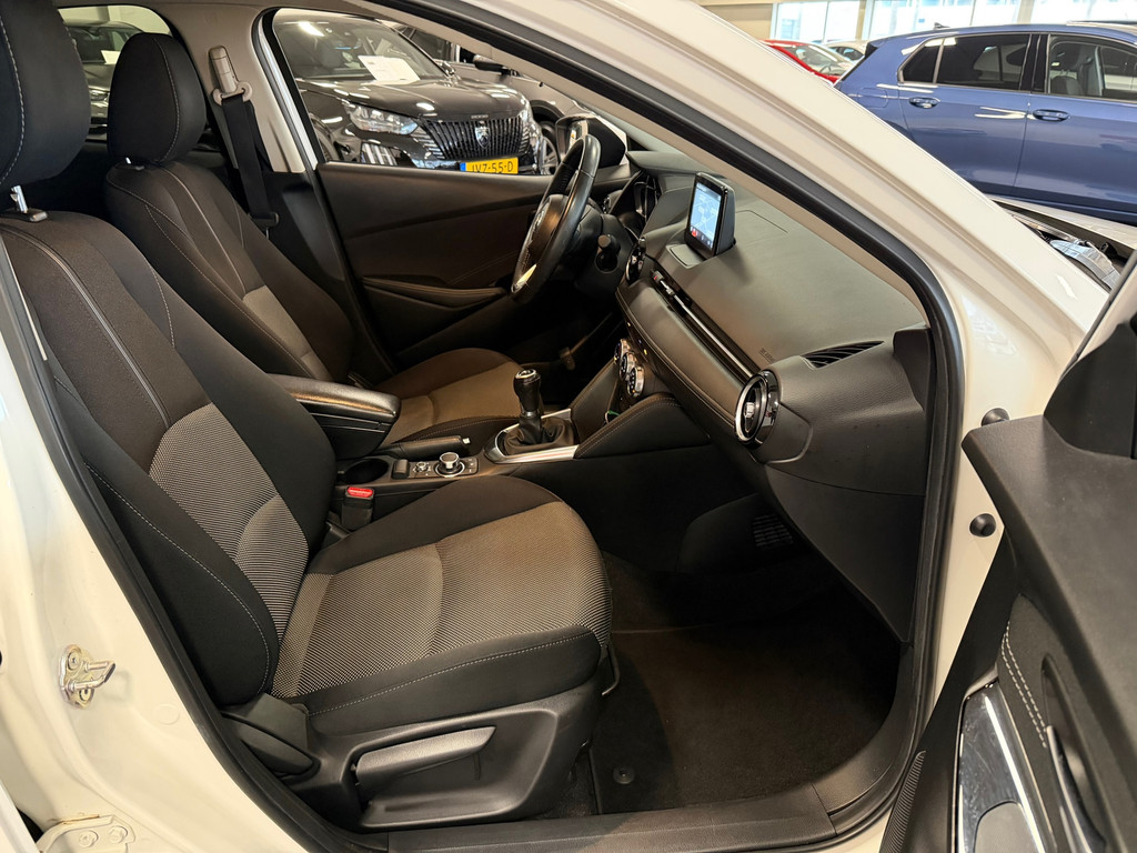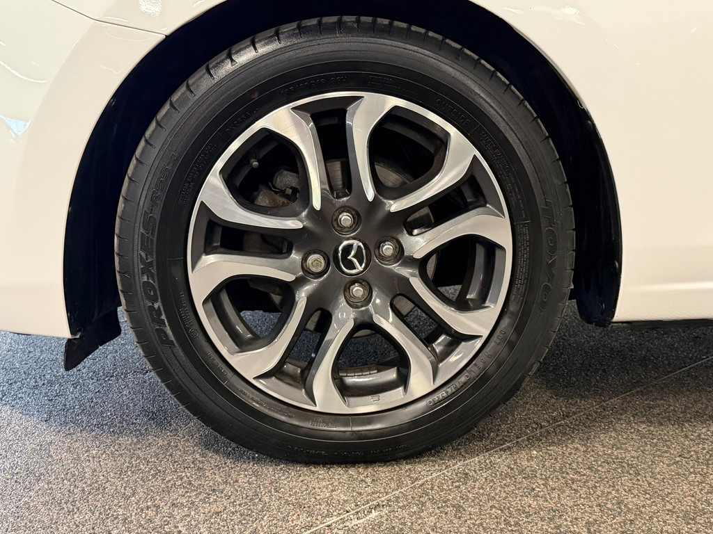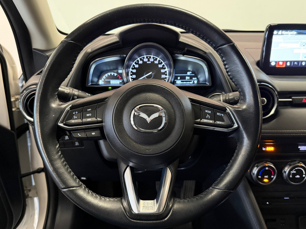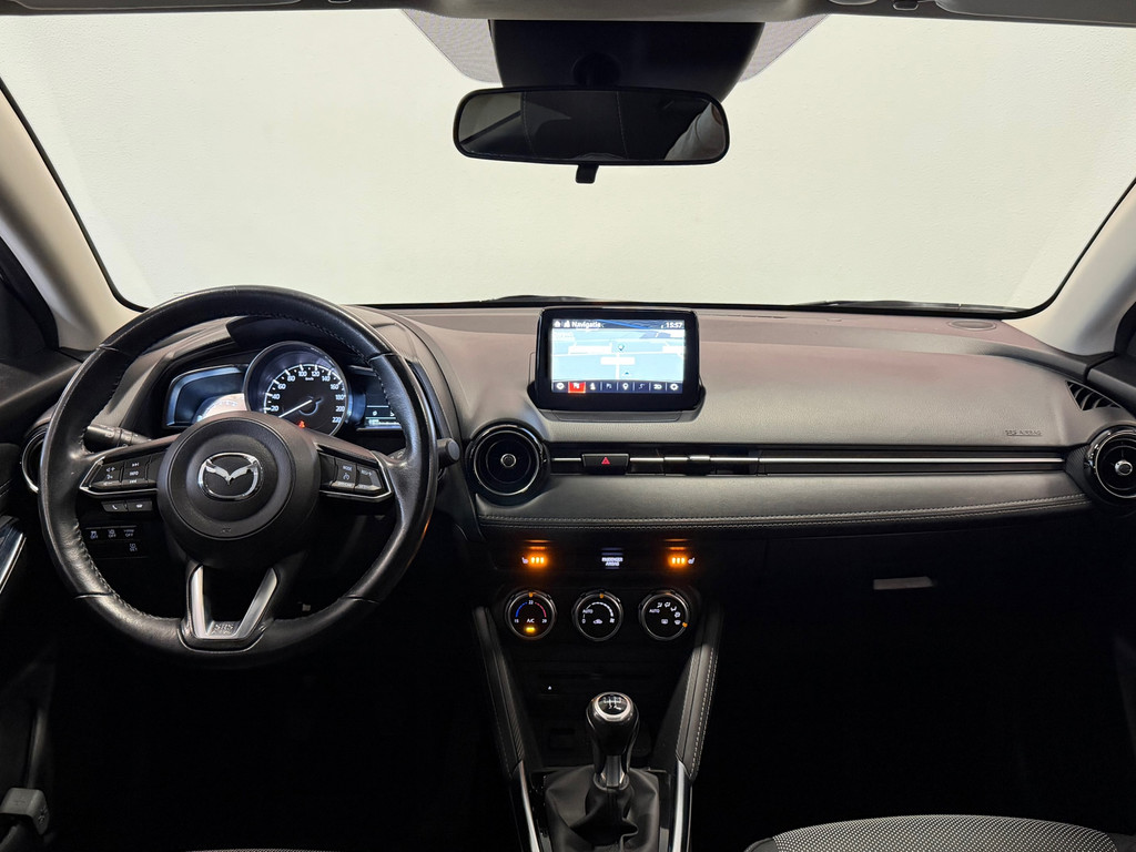 Spraakbediening herkent uw stem en voert opdrachten uit terwijl u beide handen aan het stuur houdt. De kortste weg, de zuinigste weg, de snelste weg... elke weg is te vinden met het navigatiesysteem. Deze Mazda 2 denkt vooruit als u van plan bent af te slaan. De kruisend verkeer detectie calculeert en analyseert het tegemoetkomende verkeer en waarschuwt als het risico op aanrijding bestaat. In een auto als deze kunt u niet zonder automatische airconditioning, zodat de temperatuur altijd goed is. De DAB-ontvanger zorgt voor een ruime keuze uit digitale radiozenders en een kristalheldere geluidsweergave. Ook parkeersensoren achter, regensensor, cruise control, lederen stuur, centrale deurvergrendeling met afstandsbediening en boordcomputer horen tot de voorzieningen op deze auto.