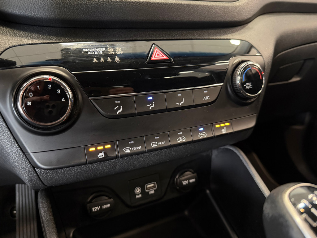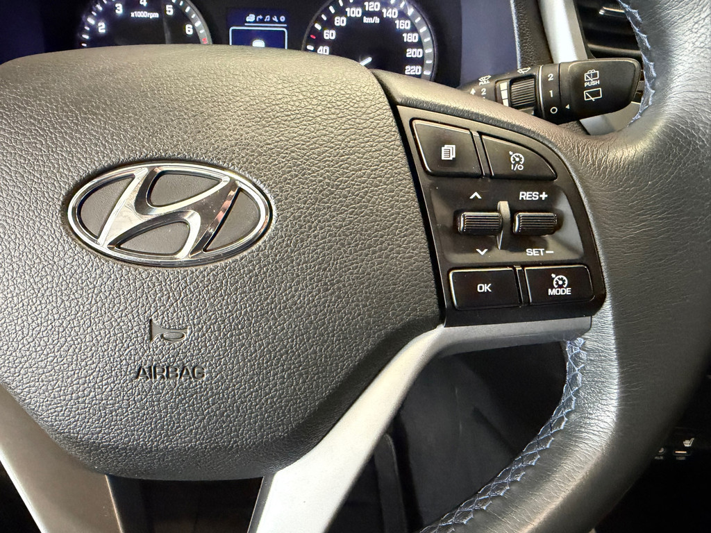 Zoals u mag verwachten van deze Hyundai Tucson is hij uitgerust met een reeks aan actieve veiligheidssystemen. In het instrumentarium kunt u bovendien de verkeersborden zien die u onderweg tegenkomt. Zo helpt deze Hyundai u om veiliger te rijden. Het Lane-keeping systeem let constant op en waarschuwt of corrigeert als u onoplettend over de lijnen van de rijstrook gaat. Brake assist verhoogt de remdruk in een noodsituatie zodat u sneller stil staat. De auto is ook uitgerust met hill hold functie en bandenspanningcontrolesysteem.