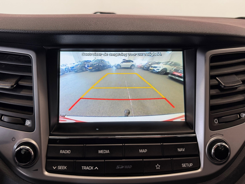 Met de achteruitrijcamera ziet u wat er achter de auto gebeurt. Zo rijdt u moeiteloos achteruit. Je weet altijd waar je moet zijn, dankzij het navigatiesysteem. De achteropkomend verkeer waarschuwing bewaakt de afstand tot achterliggers en geeft een signaal als er te weinig ruimte is. De automatische airconditioning zorgt voor een behaaglijk klimaat in de auto. Een andere zender zoeken of het volume wijzigen? Het audiosysteem heeft bediening op het stuur. Ook is de Hyundai uitgerust met: regensensor, cruise control, automatisch dimmende binnenspiegel, lederen stuur en centrale deurvergrendeling met afstandsbediening.