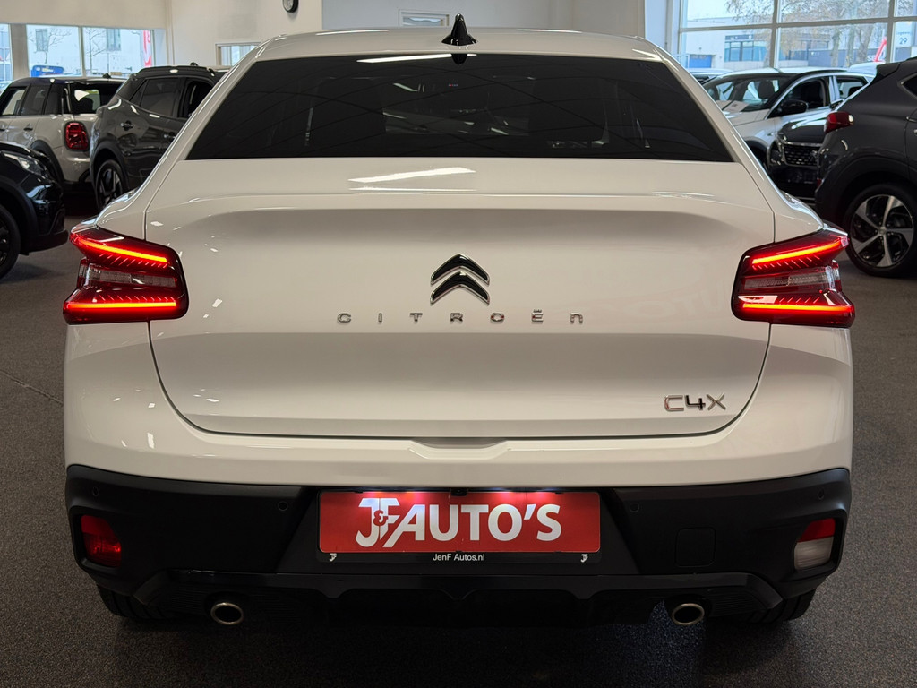Laat u niets wijsmaken, deze Citroen C4 X biedt alles wat u van een auto verlangt. De aandrijving van deze Citroen wordt verzorgd door een driecilinder motor en een automatische transmissie. Maximaal comfort en stijl krijgt u dankzij het lederen interieur. Bij de uitrusting van deze Citroen horen onder meer 18 inch lichtmetalen velgen, halflederen bekleding, LED-dagrijverlichting, geluidsisolerende ramen, in hoogte verstelbare passagiersstoel en in delen neerklapbare achterbank.