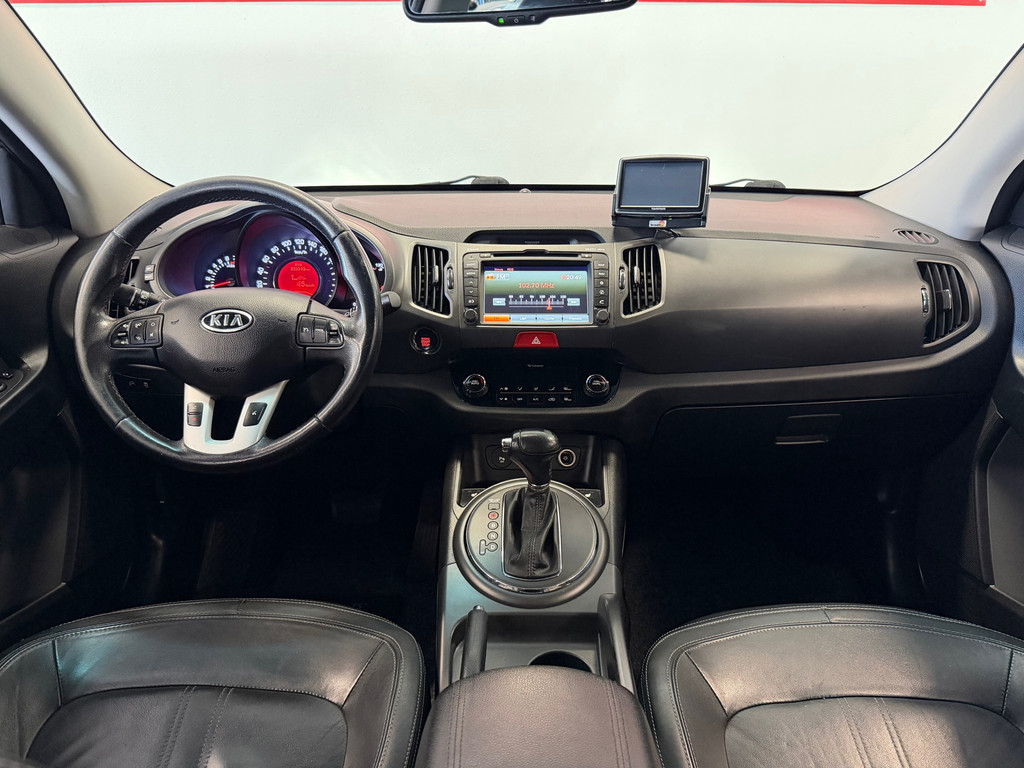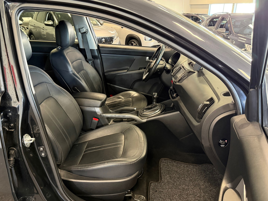Alle technologie in de Kia Sportage is er op gericht om uw rit veilig en gemakkelijk te laten verlopen. De aandrijving van deze Kia wordt verzorgd door een viercilinder motor en een automatische transmissie. Met het lederen interieur ervaart u direct het gevoel van luxe en comfort. Met de krachtige xenonverlichting heeft u optimaal zicht in het donker. Tot de uitrusting behoren ook 18 inch lichtmetalen velgen, adaptieve mistlampen en extra getint glas.