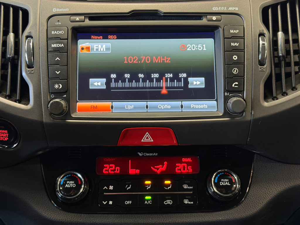 Selecteer uw reisbestemming en het navigatiesysteem brengt u snel waar u moet zijn. Of het buiten nu warm is of koud, dankzij electronic climate control is het binnen altijd behaaglijk. Andere zender? Het geluid aanpassen? Dat kan allemaal moeiteloos door de audiobediening op het stuur. De parkeersensoren vertellen precies hoe ver u kunt gaan. Hoe dichter op een obstakel, hoe sneller de piepjes. De regensensor is slim en alert, van de eerste spatjes tot een wolkbreuk. Altijd genoeg automatische wiscapaciteit. U bent in deze Kia ook voorzien van cruise control, keyless entry, automatisch dimmende binnenspiegel, lederen stuur en centrale deurvergrendeling met afstandsbediening.