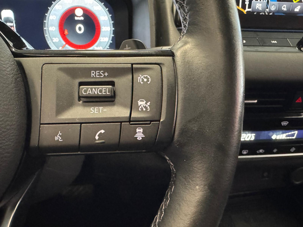 Het digitale dashboard vertelt u onderweg alles dat bijdraagt aan een veilige, efficiënte rit. Met de 360 graden camera, verzorgd door vier camera's, wordt rijden in drukke steden of het navigeren in nauwe ruimtes een koud kunstje. Adaptive cruise control is veilig en comfortabel. De snelheidsregelaar houdt automatisch afstand tot het voertuig dat voor u rijdt. Vanaf elke plek contact maken met deze auto: dat kan met behulp van remote services, die u simpel activeert met uw smartphone. Onderweg kunt u veilig genieten van het audio-installatiesysteem met DAB-radio en het full map navigatiesysteem. Want in deze Nissan bedient u ze vanaf het stuurwiel. De uitrusting van deze auto is met achteropkomend verkeer waarschuwing, kruisend verkeer detectie, automatische airconditioning, sportstuur met schakelpaddels, regensensor en keyless entry behoorlijk compleet.