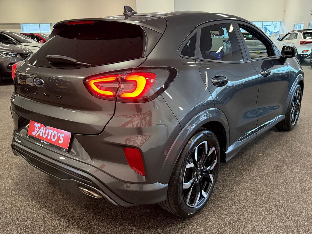 Zoals u mag verwachten van deze Ford Puma is hij uitgerust met een reeks aan actieve veiligheidssystemen. Onderweg fungeert de verkeersbord-detectie als het ware als uw bijrijder en attendeert u op de verkeersborden langs de weg. Onbedoeld buiten de rijstrook raken wordt voorkomen door het Lane-keeping systeem. De Brake Assist haalt het maximum uit de remkracht van deze Ford Puma als zich een noodsituatie voordoet. Bovenop deze veiligheidsfeatures heeft deze Ford bovendien hill hold functie en bandenspanningcontrolesysteem.