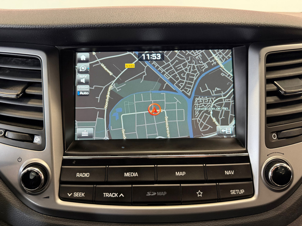 Met de achteruitrijcamera ziet u wat er achter de auto gebeurt. Zo rijdt u moeiteloos achteruit. Je weet altijd waar je moet zijn, dankzij het navigatiesysteem. De achteropkomend verkeer waarschuwing bewaakt de afstand tot achterliggers en geeft een signaal als er te weinig ruimte is. De automatische airconditioning zorgt voor een behaaglijk klimaat in de auto. Een andere zender zoeken of het volume wijzigen? Het audiosysteem heeft bediening op het stuur. Ook is de Hyundai uitgerust met: regensensor, cruise control, automatisch dimmende binnenspiegel, lederen stuur en centrale deurvergrendeling met afstandsbediening.