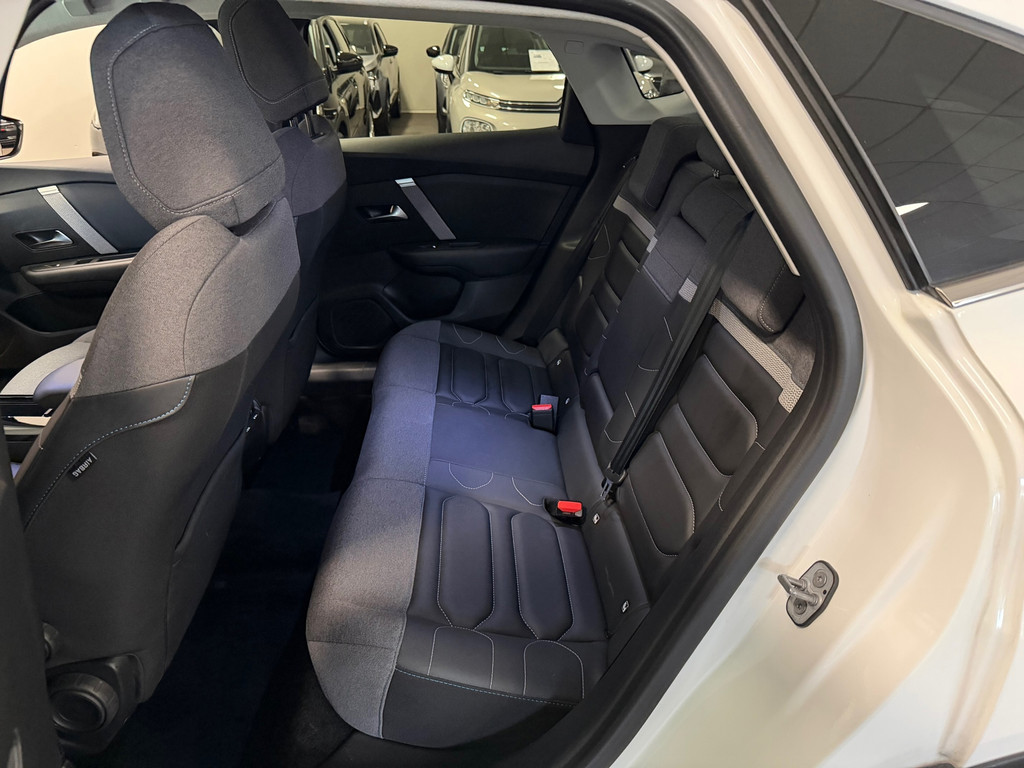 De Citroen C4 X is uw trouwe partner onderweg, want hij houdt continu voor u de situatie op en om de weg in de gaten. Volautomatische veiligheidssystemen kunnen daarbij ingrijpen om u voor gevaarlijke situaties te behoeden. Snelheid en andere benodigde info hoeft u niet meer te bekijken op het dashboard. De head-up display projecteert de gegevens in de voorruit. Onderweg zorgt verkeersborddetectie ervoor dat u geen waarschuwingsbord mist. Indien u onbedoeld de rijstrook lijkt te verlaten, reageert het Lane-keeping systeem meteen en corrigeert. In deze Citroen vinden we verder een accident avoidance system, forward collision warning system, hill hold functie, brake assist, vermoeidheidsherkenning en bandenspanningcontrolesysteem.